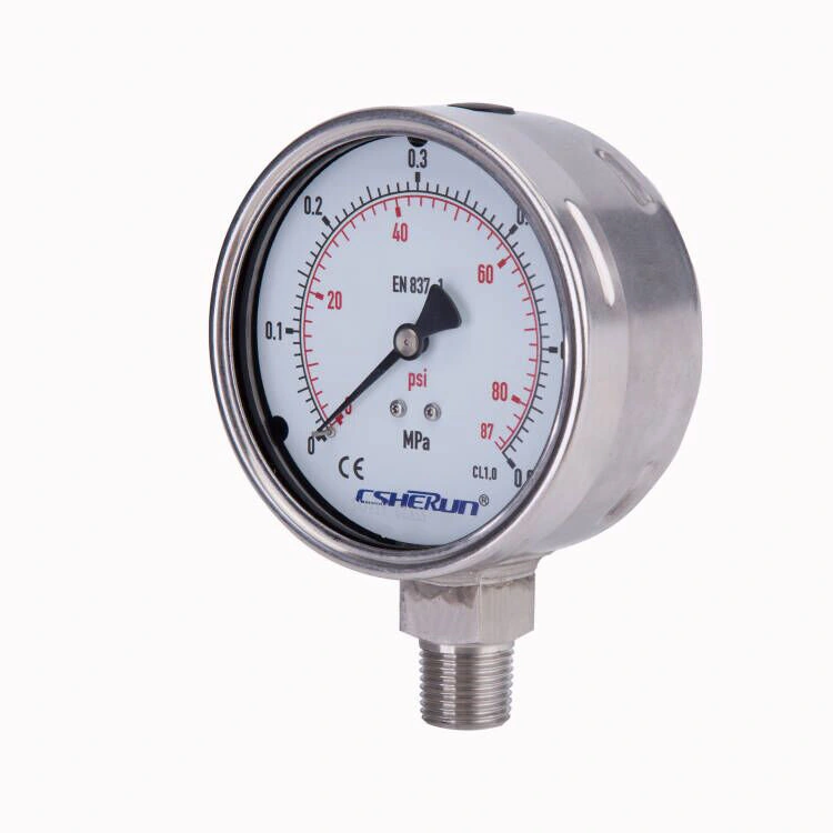 Hos CSHERUN er vi dedikerede til at levere trykmålere i topkvalitet, der opfylder vores kunders forskellige behov. Vores trykmålerbevægelser i rustfrit stål er designet til nominelle størrelser på 100, 150 og 160 mm applikationer, og de tilbyder et bredt måleområde fra -1...0 bar til 0...8000 bar.